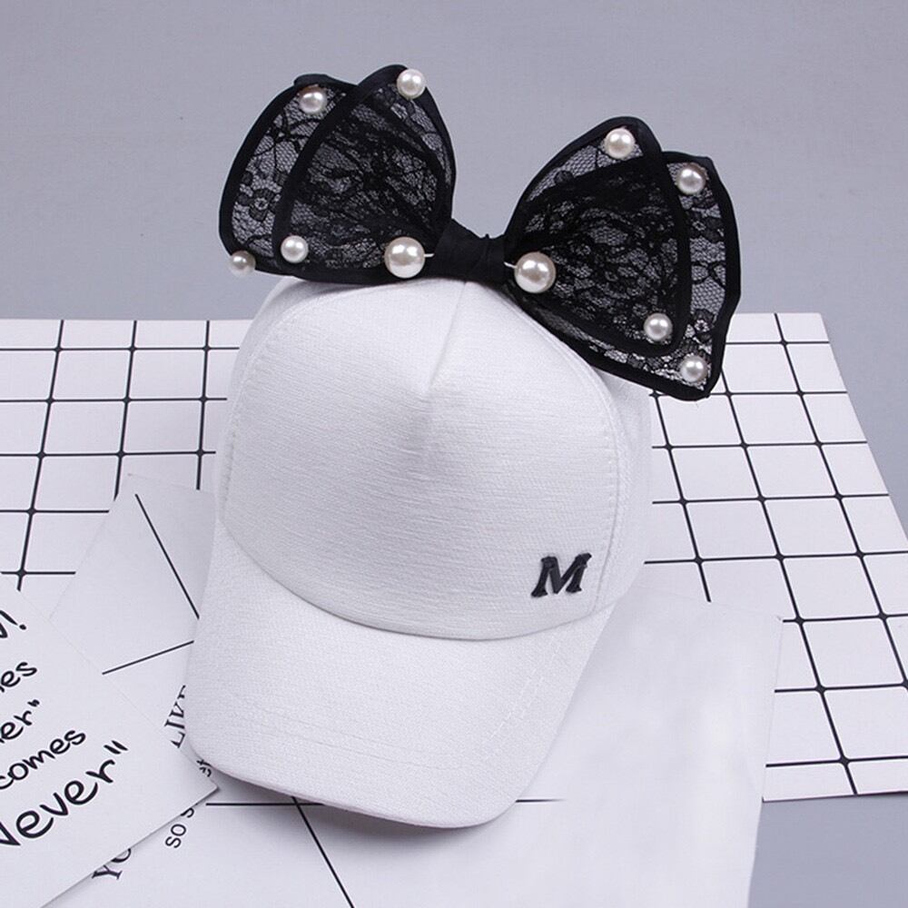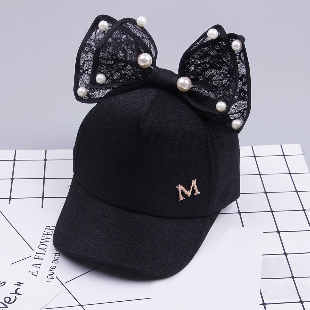 パールの付いたリボンがすごく可愛いキッズキャップ帽です(^^)